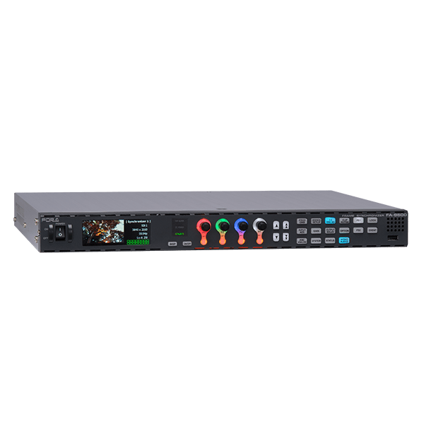 FA-9600 processor’s two HD/SD inputs includes a frame synchronizer. Because the signal processor features 12G-SDI terminals